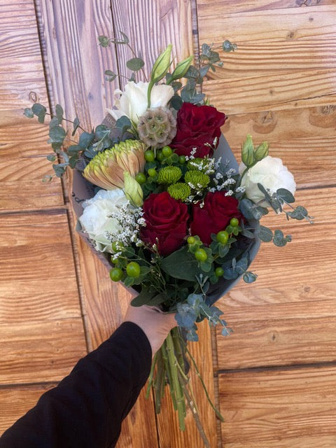 Un bello mix floral estilo cucurucho, un regalo práctico y rápido.